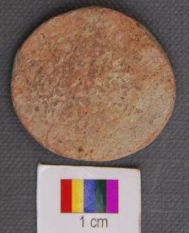 | Description / विवरण | It is a small perfactly circular terracotta disc with grind edges. It has thin section and made of red slipped ware pot sherd. |