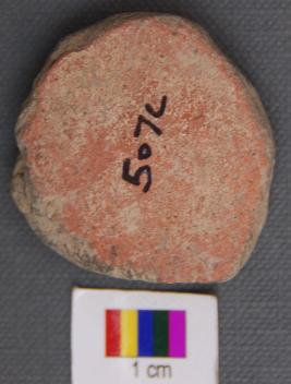 | Description / विवरण | It is a small terracotta disc with uneven thickness and partially grind edges. It is made of red ware pot sherd. |