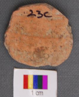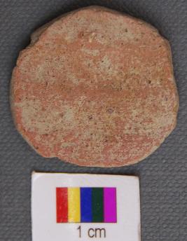 | Description / विवरण | It is a small terracotta disc with partially grind edges. It has thin section and made of red ware pot sherd. |