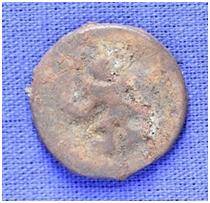 | Description / विवरण | The shape of the coin is circular. Obverse- Kushana type king,standing with his right arm curved upward and left arm is not visible. Reverse- probably the figure of MAO or Moon God with the crescent above the left shoulder and the right arm is not visible. |