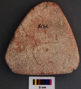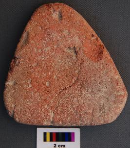 | Description / विवरण | It is a triangular terracotta cake which has section cracks are developing on one side. |
