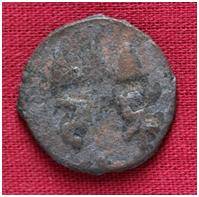 | Description / विवरण | The shape of the coin is circular. Obverse-Probably the figure of MAO or Moon-God with his right arm curved upward and the crescent above the left shoulder. Reverse- These hills, or cone like objects placed in a straight line and below them there is an inscription. |