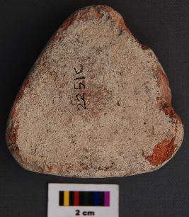 | Description / विवरण | It is a triangular terracotta cake with thick section and blunt corners. Its one of the arms is partially broken. |