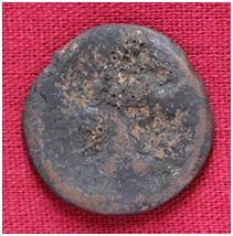 | Description / विवरण | The shape of the coin is circular. Obverse- Kushana type king, standing with his right arm curved upward and left arm extended. Reverse- Probably the figure of MAO or Moon-God with the crescent above the left shoulder and his right are is not clearly visible. |