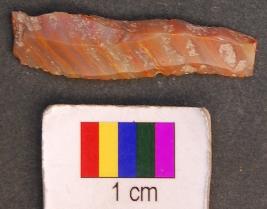 | Description / विवरण | It is small blade with parallel sides and thick section. It is retouched and has minus bulb of percussion. |