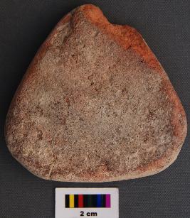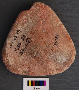 | Description / विवरण | It is a triangular terracotta cake with blunt corners. It is partially broken. |