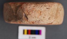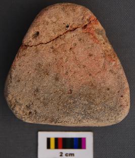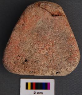 | Description / विवरण | It is a small triangular terracotta cake with thick section and blunt corners. It is partially broken and refitted. |