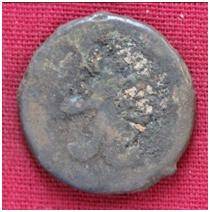 | Description / विवरण | The shape of the coin is circular. Obverse- - Kushana type king, standing with his right arm extended and his left arm is not clearly visible. Reverse- Probably the figure of MAO or Moon-God with his right arm curved upward and the crescent above the left shoulder. |