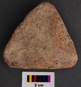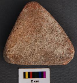 | Description / विवरण | It is a small triangular terracotta cake with blunt corners. It has uneven thickness. |