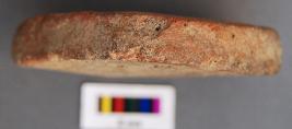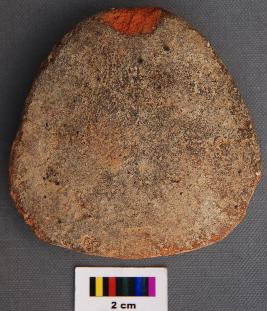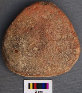 | Description / विवरण | It is a triangular terracotta cake with thin section and blunt corners. It is partially broken and has uneven thickness. It looks almost circular. |