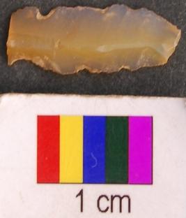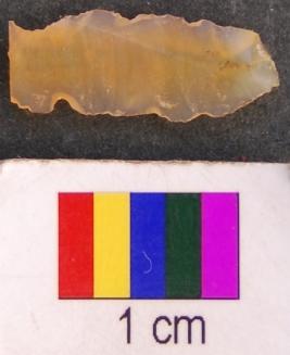 | Description / विवरण | It is a parallel sided retouched blade with thin section. It has notches on either arm and has thin section. Its distal end is missing. |