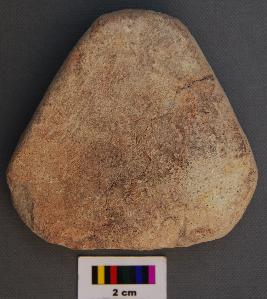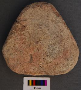 | Description / विवरण | It is a triangular terracotta cake with thick section and blunt corners. It has uneven thickness. |