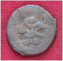 | Description / विवरण | The shape of the coin is circular. Obverse-Kushana type of king, standing with his left arm curved down ward and his right arm curved upward. Reverse- Probably the figure of MAO or Moon-God with his right arm curved upward and the crescent above the left shoulder. |
