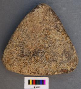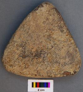 | Description / विवरण | It is a triangular terracotta cake with thick but uneven thickness. It is over fired. |