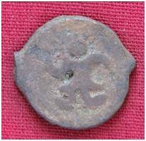 | Description / विवरण | The shape of the coin is circular. Obverse- - Kushana type king, standing with his right arm curved upward and left arm curved downward. Reverse- Probably the figure of MAO or Moon-God with his right arm curved upward and the crescent above the left shoulder. |