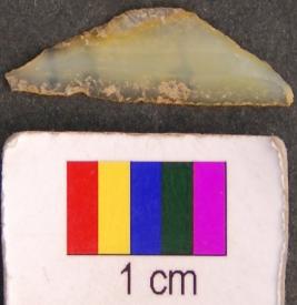 | Description / विवरण | It is a roughly triangular stone tool, which resembles lunate. It has two working edges. |