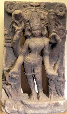 | Description / विवरण | Parvati occupies an important place in the hindu pantheon. The four armed Parvati is standing in a tribhanga pose on double petalled lotus pedestal. The right major hand holds rosary and the left major hand holds ketaka flower. Her both side additional hand holds pose and musala. The sculpture engraved on the decorated torana. The torana is supported at the sides by a kumbha stambha. The two attendant are standingon both side of this image. The lion sleeping on the right side of pedestal. The hair of this image in kirita- mukuta style. |