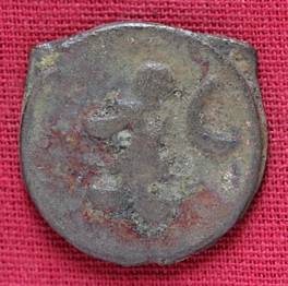 | Description / विवरण | The shape of the coin is circular. Obverse Probably the figure of MAO or Moon-God with right hand curved downwards and the crescent above the left shoulder. Reverse Three hills or cone like object place in a straight line and below, there is inscription. |