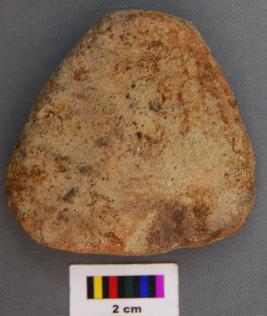 | Description / विवरण | It is a small triangular terracotta cake with thick section and blunt corners. It has uneven thickness. |