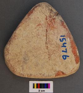 | Description / विवरण | It is a triangular terracotta cake with thick section and blunt corners. It has uneven thickness. |