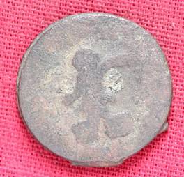 | Description / विवरण | The shape of the coin is circular. Obverse Kushana type king, standing with his right hand curved down wards and his left hand extended. Reverse Probably the figure of MAO or Moon-God with his right hand curved downwards and the crescent above the left shoulder. |