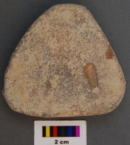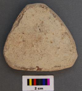 | Description / विवरण | It is a small triangular terracotta cake with blunt corners. It has uneven thickness. |