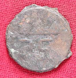 | Description / विवरण | The shape of the coin is circular. Obverse Probably the figure of MAO or Moon-God with right hand slightly downwards and the crescent above the left shoulder. Reverse Three hills or cone like objects place in a straight line and below them there is inscription. |