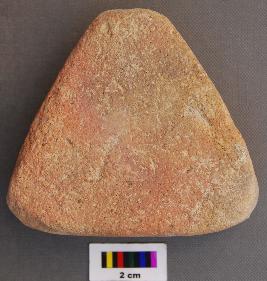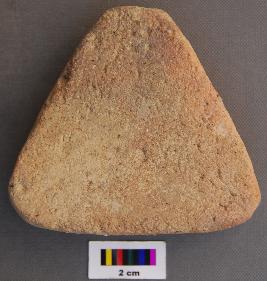 | Description / विवरण | It is a triangular terracotta cake with thick section and blunt corners. It has uneven thickness. |