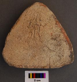 | Description / विवरण | It is a small triangular terracotta cake with uneven section and blunt corners. |