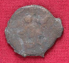 | Description / विवरण | The shape of the coin is circular. Obverse Kushana type king, standing with his right hand curved upwards and his left hand extended. Reverse Probably the figure of MAO or Moon-God with his right hand curved upwards and the crescent above the left shoulder. |