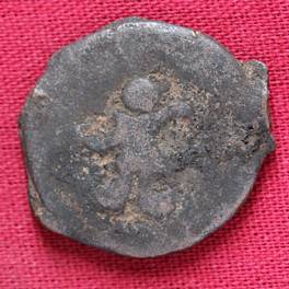 | Description / विवरण | The shape of the coin is circular. Obverse Kushana type king, standing with his right hand curved upwards and his left hand extended. Reverse Probably the figure of MAO or Moon-God with his right hand curved upwards and the crescent above the left shoulder. |