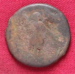 | Description / विवरण | The shape of the coin is circular. Obverse Kushana type king, standing with his right hand upwards and his left hand downwards. Reverse Probably the figure of MAO or Moon-God with his right hand upwards and the crescent above the left shoulder. |
