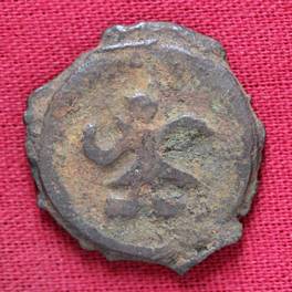 | Description / विवरण | The shape of the coin is circular. Obverse Kushana type king, standing with his right hand curved upwards and his left hand extended. Reverse Probably the figure of MAO or Moon-God with his right hand curved upwards and the crescent above the left shoulder. |