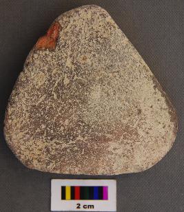 | Description / विवरण | It is a triangular terracotta cake with blunt corners. It has uneven thickness. |