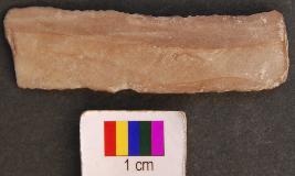 | Description / विवरण | It is fragment of a long parallel sided blade with retouched arms. It has thick section and its striking end is missing. |