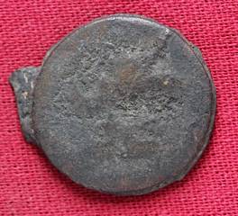 | Description / विवरण | The shape of the coin is circular. Obverse Kushana type king, standing with his right hand curved upwards and his left hand extended. Reverse Probably the figure of MAO or Moon-God with his right hand curved upwards and the crescent above the left shoulder. |