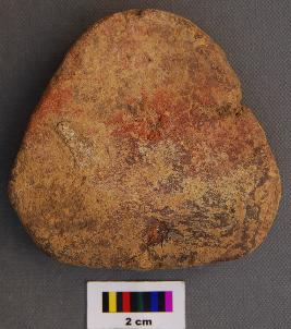 | Description / विवरण | It is a triangular terracotta cake with round corners. It is over fired. |