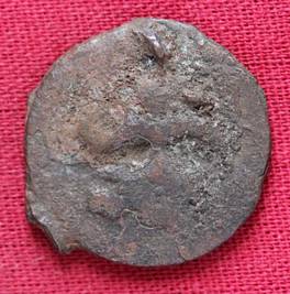 | Description / विवरण | The shape of the coin is circular. Obverse Kushana type king, standing with his right hand curved upwards and his left hand extended. Reverse Probably the figure of MAO or Moon-God with his right hand curved upwards and the crescent above the left shoulder. |