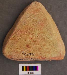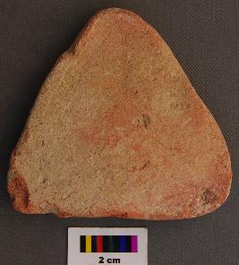 | Description / विवरण | It is a triangular terracotta cake with uneven thickness. It is slightly swollen on one side. |