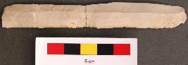 | Description / विवरण | It is a ribbon blade with retouched arms. It has thick section and its dital part is missing. |