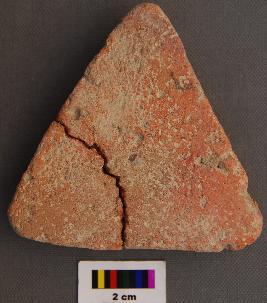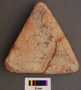 | Description / विवरण | It is a triangular terracotta cake, which is broken in two pieces and refitted. |