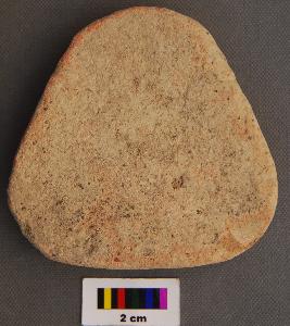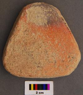 | Description / विवरण | It is a triangular terracotta cake with round corners. It is over fired. |