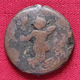 | Description / विवरण | The shape of the coin is circular. Obverse Kushana type king, standing with his right hand curved upwards and his left hand extended. One dot on the right of the head. Reverse Probably the figure of MAO or Moon-God with his right hand downwards and left hand placed waist. The crescent above the left shoulder. |
