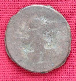 | Description / विवरण | The shape of the coin is circular. Obverse Kushana type king, standing with his right hand slightly curved upwards and his left hand extended. Reverse Probably the figure of MAO or Moon-God with his right hand curved upwards and the crescent above the left shoulder. |