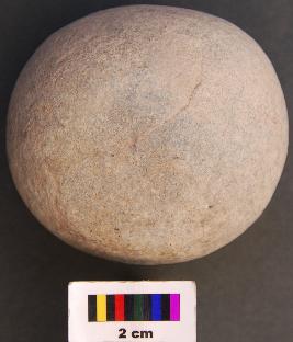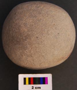 | Description / विवरण | It is a spherical stone ball the surface of which is partially polished. It was perhaps used as a muller. |