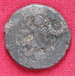| Description / विवरण | The shape of the coin is circular. Obverse Kushana type king, standing with his right hand curved upwards and his left hand extended. Reverse Probably the figure of MAO or Moon-God with his right hand curved upwards and the crescent above the left shoulder. |