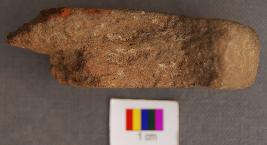 | Description / विवरण | It is a fragment of a triangular terracotta cake with round corner. |