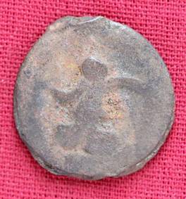| Description / विवरण | The shape of the coin is circular. Obverse Kushana type king, standing with his right hand curved upwards and his left hand extended. Reverse Probably the figure of MAO or Moon-God with his right hand curved upwards and the crescent above the left shoulder. |