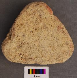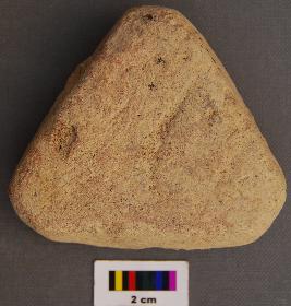 | Description / विवरण | It is a triangular terracotta cake with blunt corners and thick section. |
