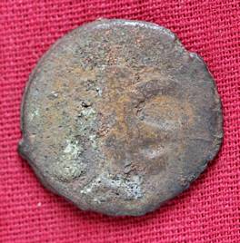 | Description / विवरण | The shape of the coin is circular. Obverse Kushana type king, standing with his right hand curved upwards and his left hand extended. Reverse Probably the figure of MAO or Moon-God with his right hand curved upwards and the crescent above the left shoulder. |